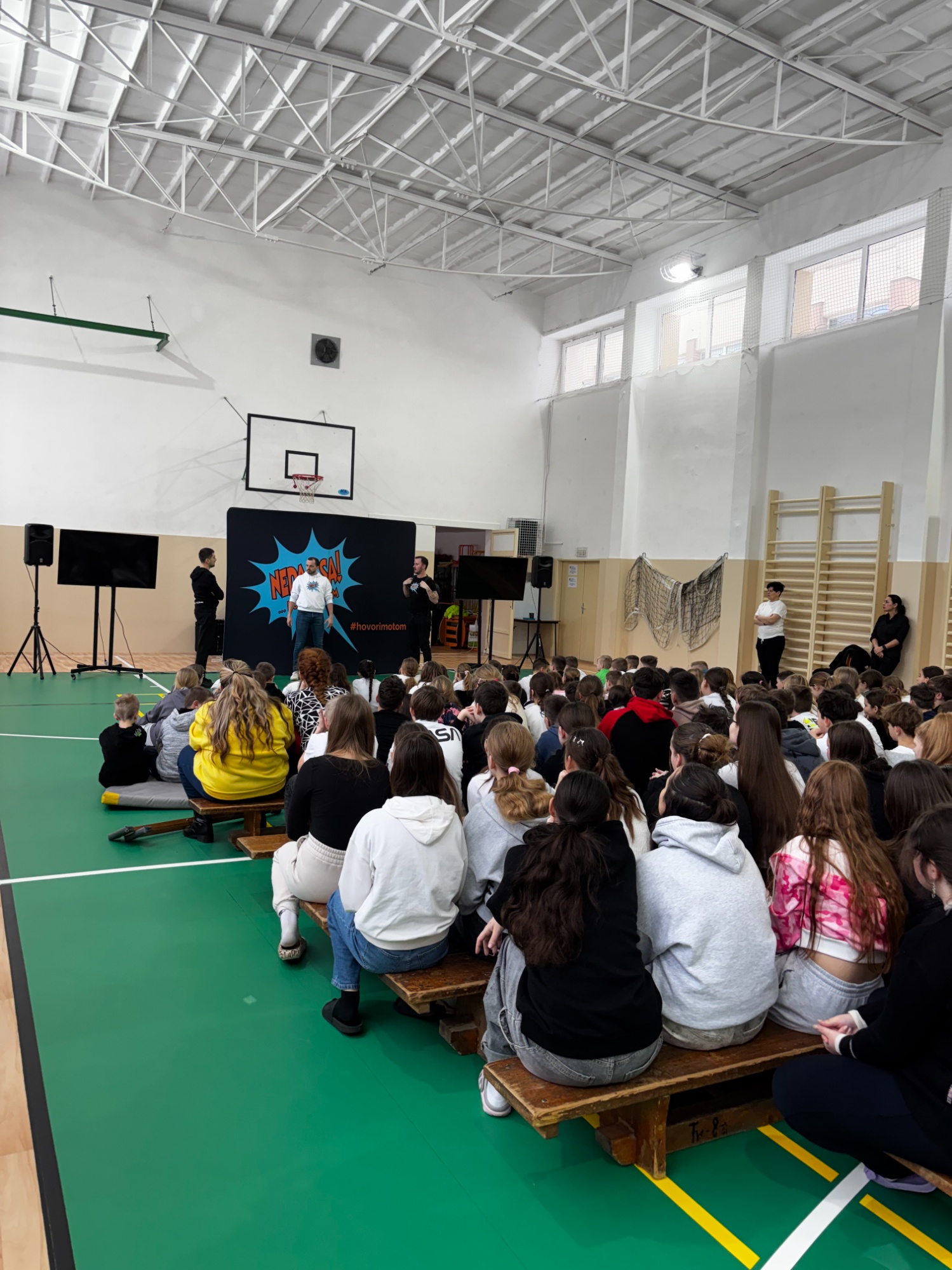 Práve táto časť bola mimoriadne cenná, pretože deti neboli iba pasívnymi divákmi, ale aktívne sa zapájali do úvahy o zodpovednosti, odvahe a empatii. Žiakom sa prostredníctvom videí prihovárali aj príslušníci policajného zboru a iné verejne známe osobnosti, ktoré zdieľali vlastné skúsenosti s posolstvom, že riešenie existuje. Celé podujatie tak nieslo nielen preventívny, ale aj silný pozitívny a motivačný odkaz: Nebáť sa ozvať. Nebyť ľahostajný. Hovoriť o tom – či už sa ma problém priamo týka alebo som jeho svedkom.